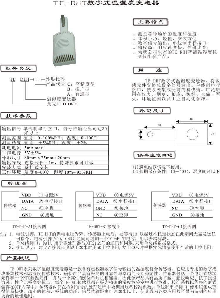 TE-DHT数字式温湿度变送器